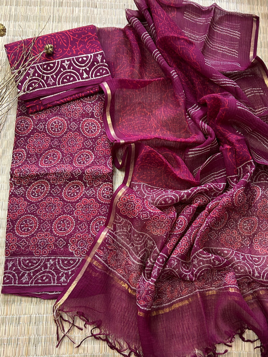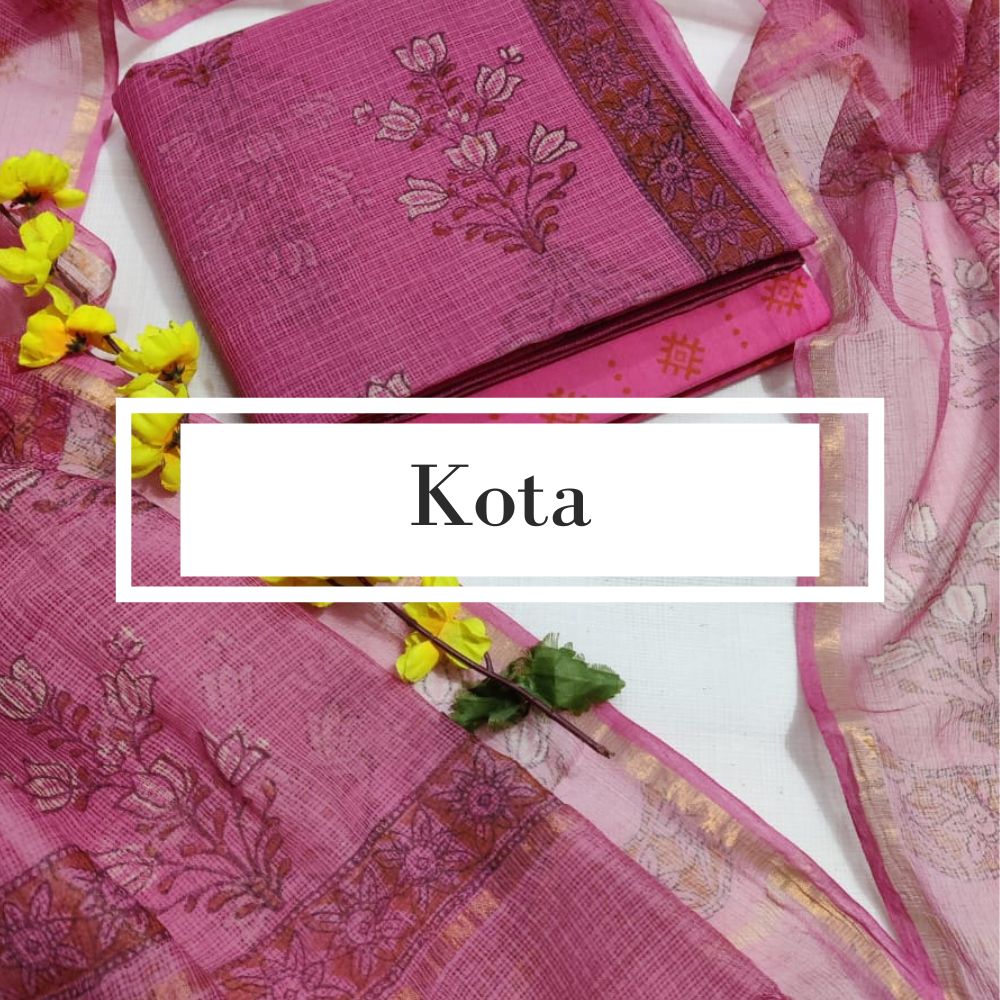 Bagru Printed Kota Doriya Dress Material. Kota is a lightweight fabric with...