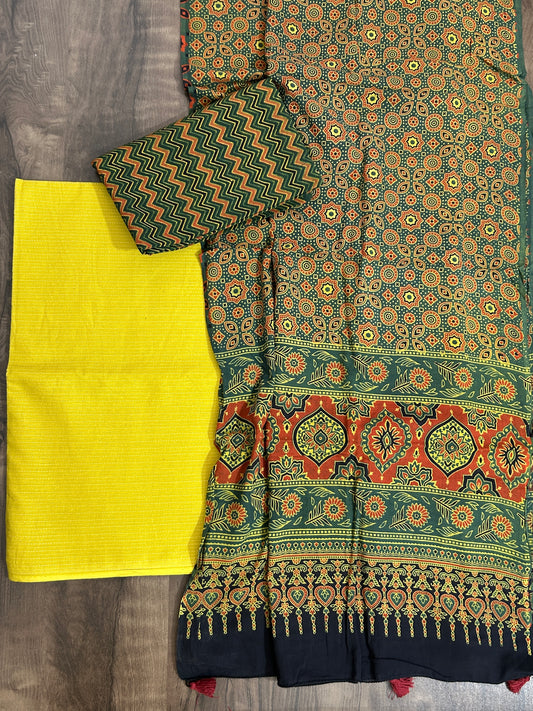 Mustard Ajrakh Cotton Hakoba Dress Material