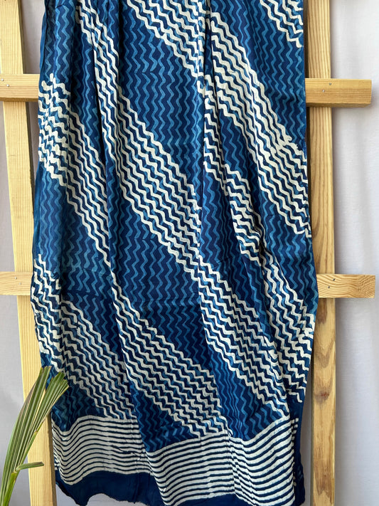 Indigo Hand BlockPrint Modal Satin Dupatta