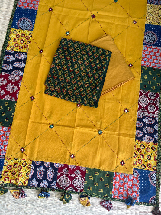 Ajrakh Cotton Dress Material with Mirror work Dupatta