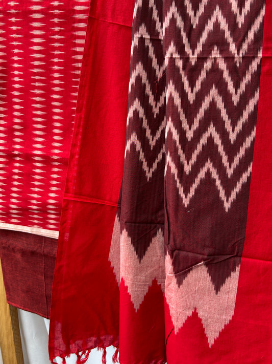 Ikat Cotton Dress Material with Pure Chiffon Dupatta