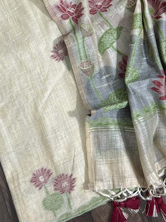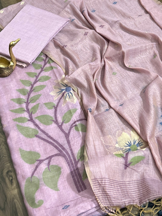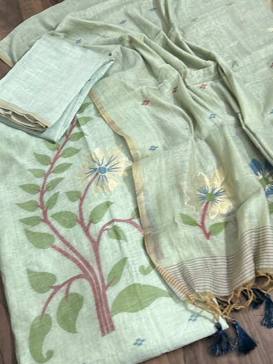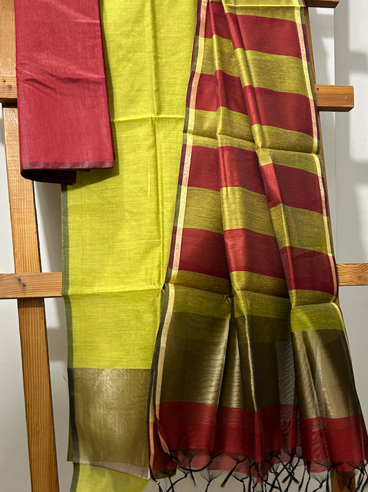 Muga Silk Cotton Dress Material with woven motives