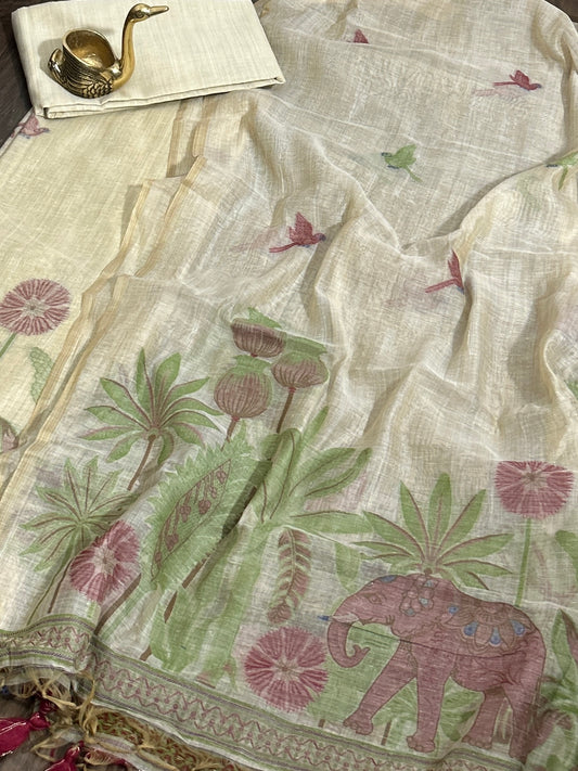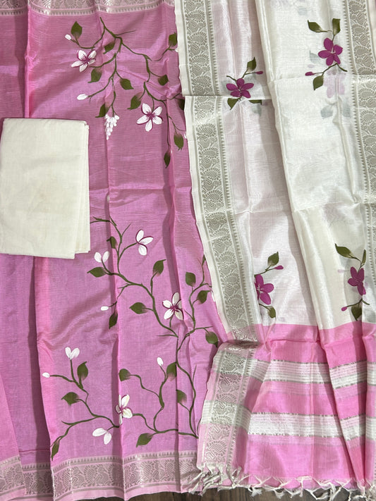 Hand Painted Chanderi Silk Cotton Dress Material