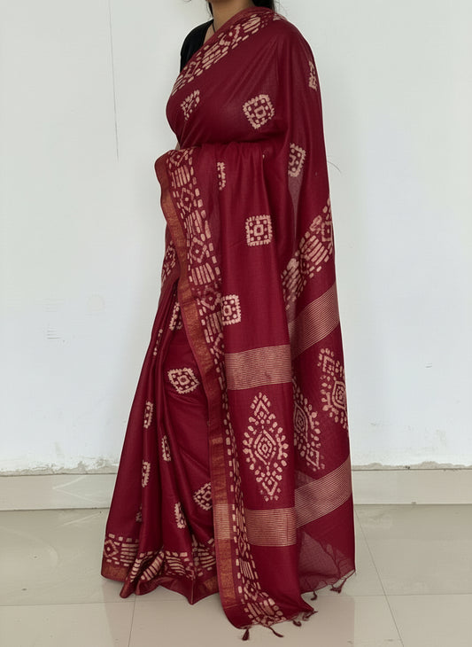 Mangalgiri Silk Saree with Nizaam and kalamkari Patchwork Border