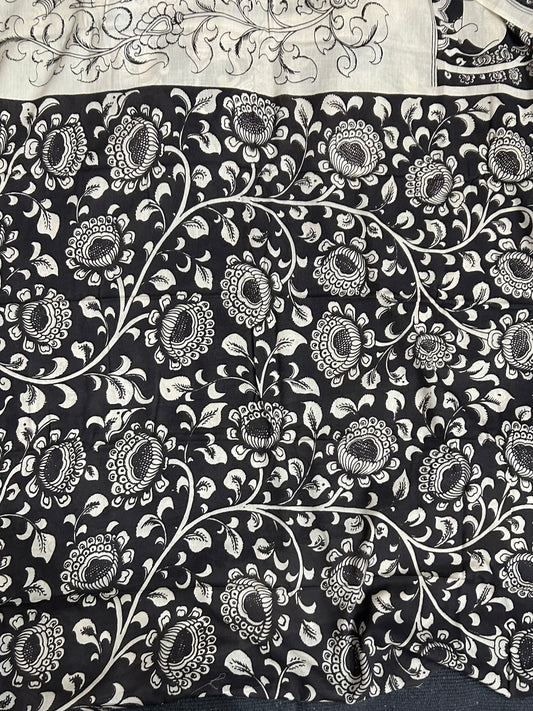Kalamkari Hand Painted Malmal Cotton Saree with Blouse