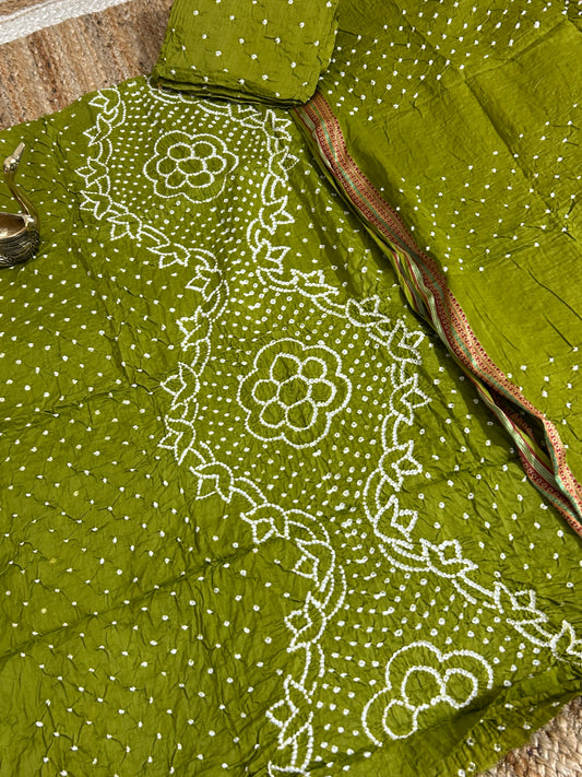 Mirror work Ikat Cotton Dress Material with Pure Chiffon Dupatta