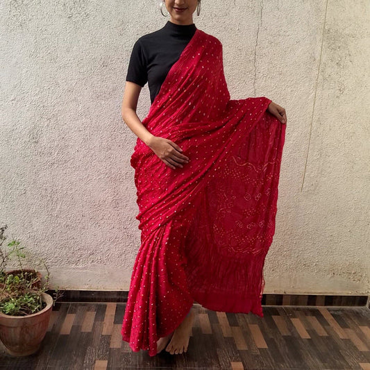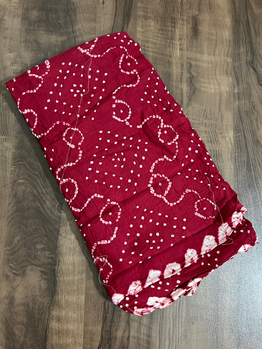 Maroon Bandhej Satin Cotton Saree with blouse