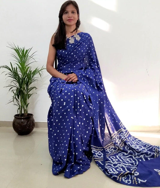 Bandhej Satin Cotton Saree with blouse