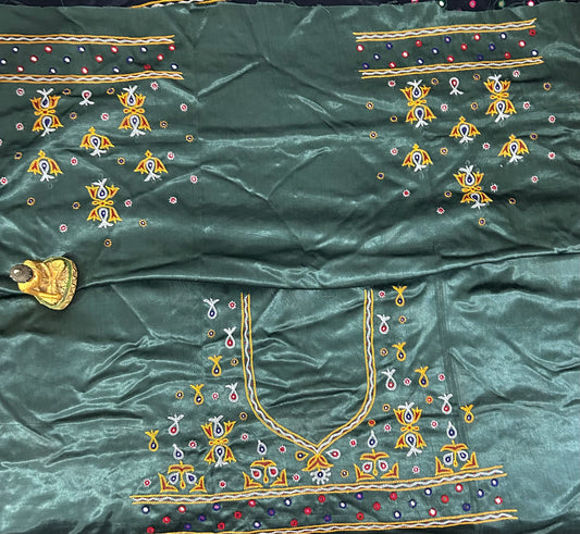 Kutchh Mirror Work Mashroo Silk Blouse Piece