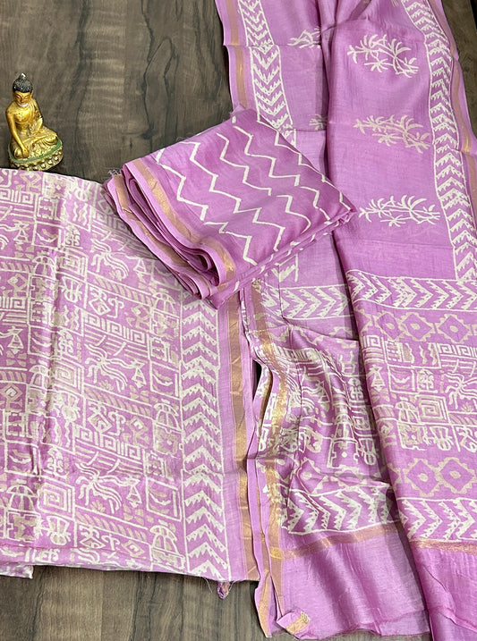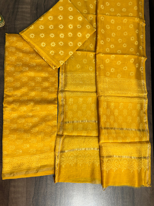 Chanderi Pure Silk Cotton Hand Blockprint Dress Material