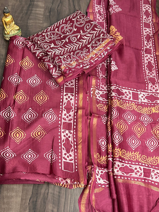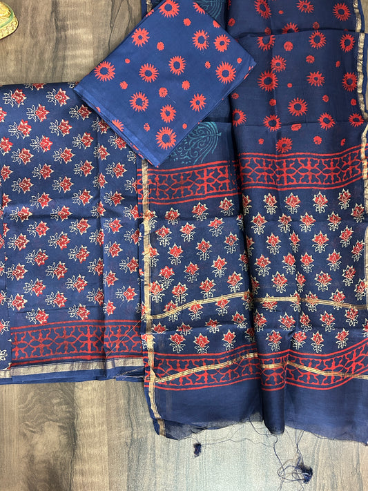 Hand BlockPrint chanderi Silk Cotton Dress Material