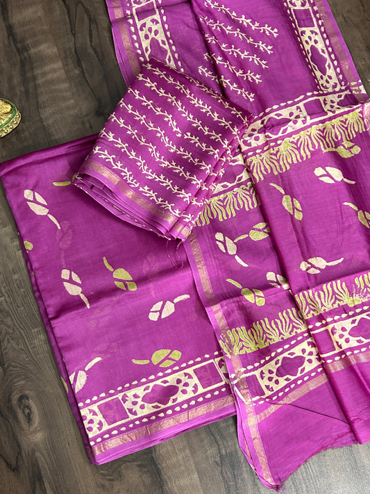 Hand BlockPrinted Chanderi Silk Cotton Dress Material
