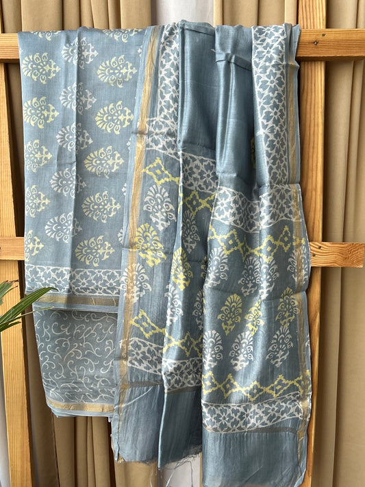 Hand BlockPrint Chanderi Silk Cotton Dress Material