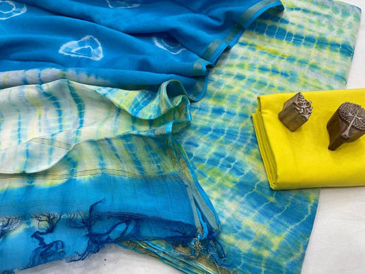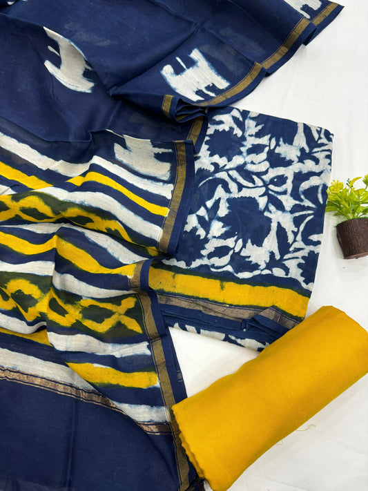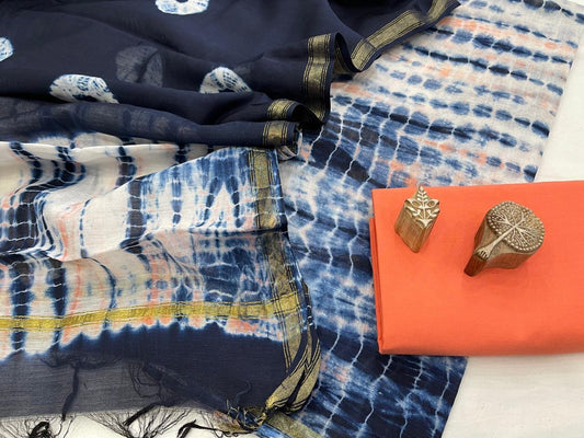Indigo Tie and Dye Chanderi Silk Cotton Dress Material