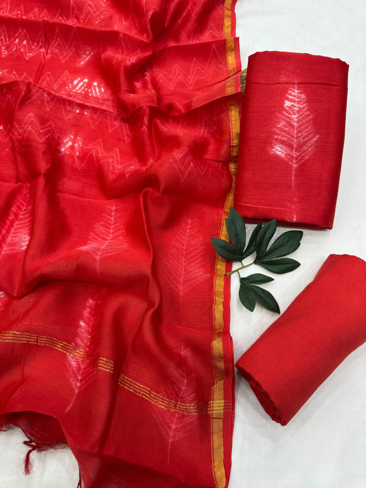 Needle Shibori Chanderi Silk Cotton Dress Material