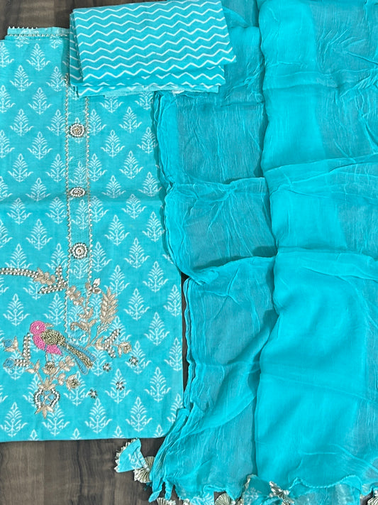 Cotton Handwork Dress Material with Pure Chiffon Dupatta