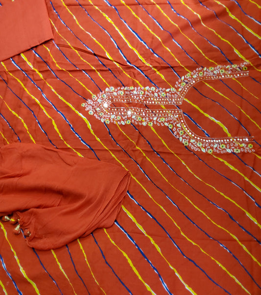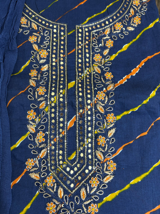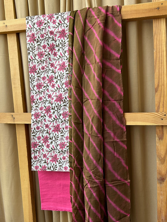 Cotton Dress Material with Lehariya Chiffon Dupatta
