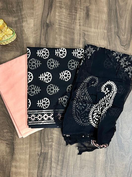 Hand BlockPrinted Cotton Dress Material with Chiffon Dupatta