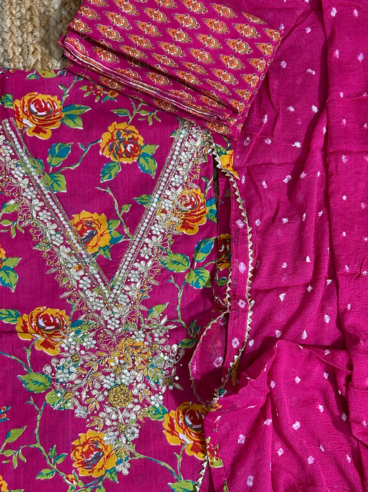 Embroidered Cotton Dress Material with Pure Chiffon Dupatta