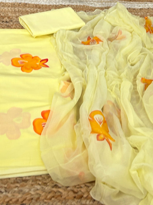 Hand Painted Coton Dress Material with Chiffon Dupatta