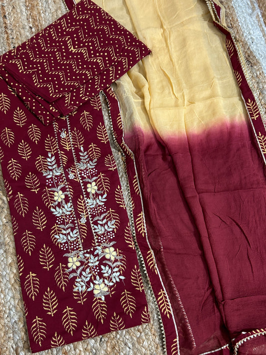 Hand BlockPrint Cotton Dress Material with Lehariya Chiffon Dupatta
