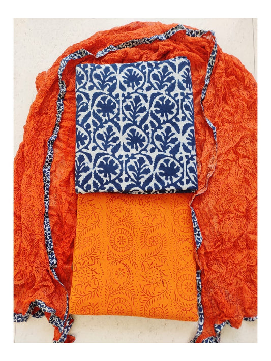 Hand BlockPrint Cotton Dress Material with Chiffon Dupatta