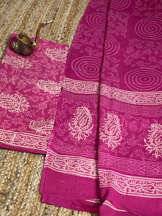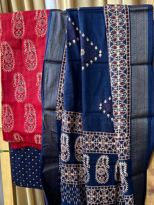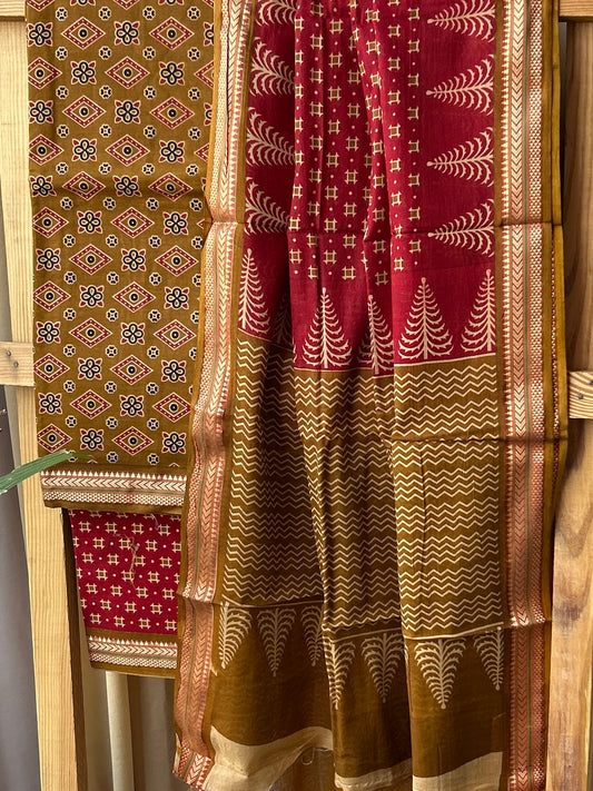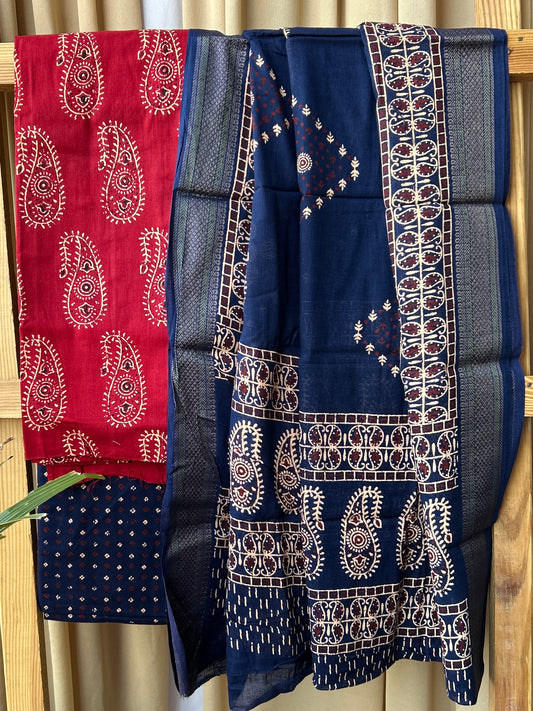 Hand Block Print Cotton Dress Material with Cotton Dupatta