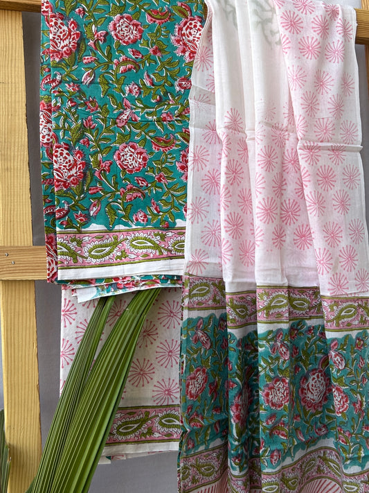 Hand BlockPrint Cotton Dress Material with Cotton Dupatta