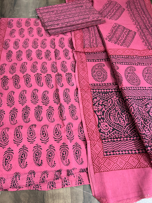Cotton Hand Block Print Dress Material with Cotton Dupatta *