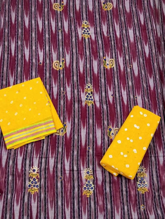 Ikat cotton Dress Material with Kutchh Rabari embroidery *#