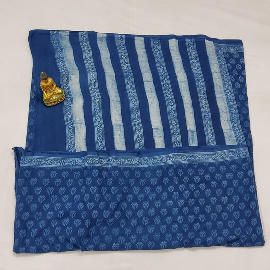 Indigo Cotton Hand BlockPrint Saree with Blouse