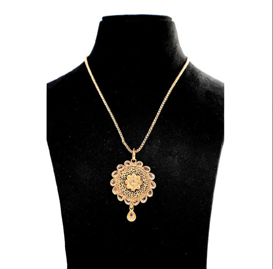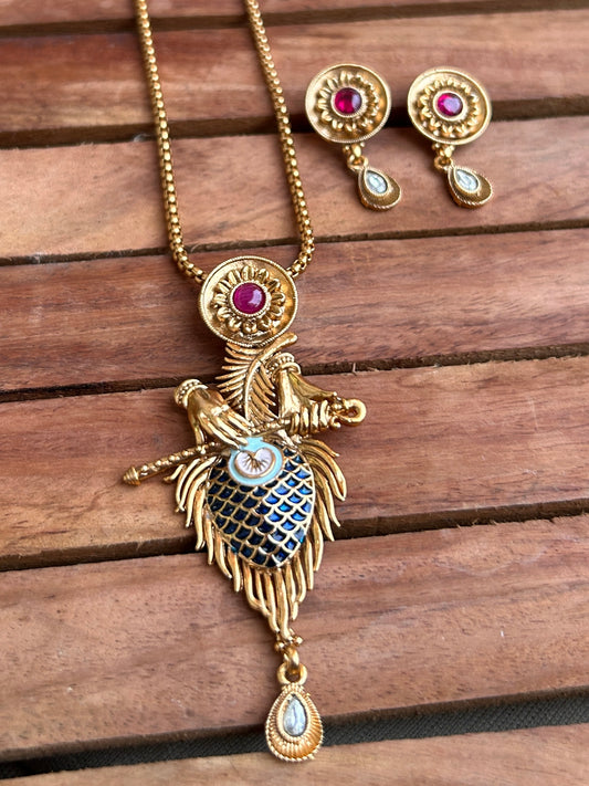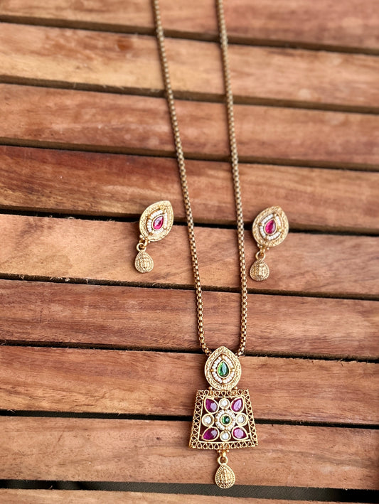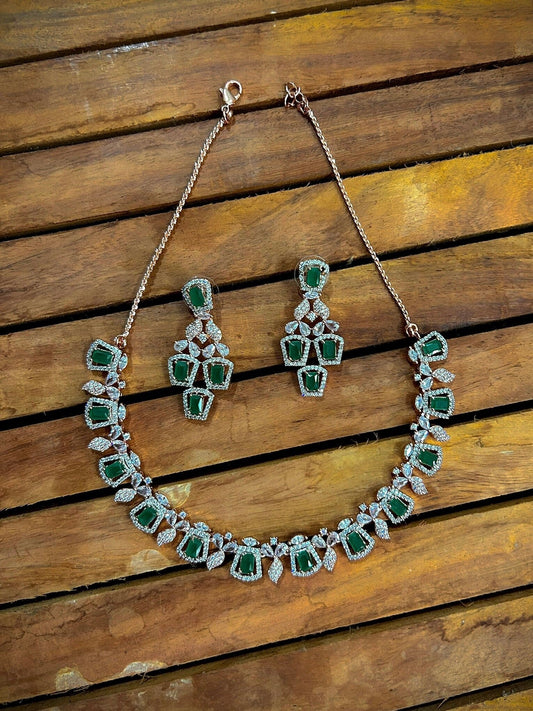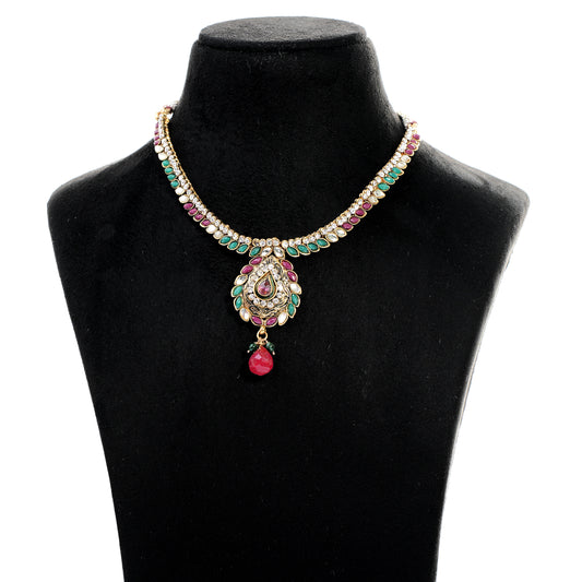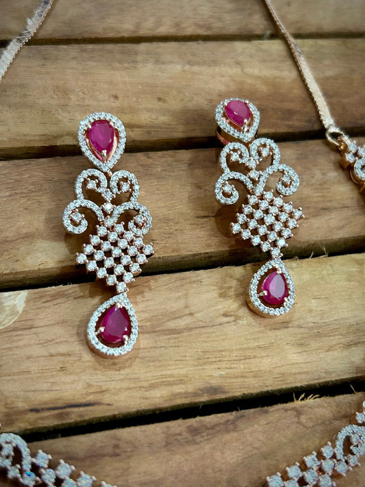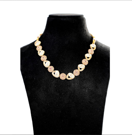 7. Pink American Diamond necklace with pink stones and rose gold polish