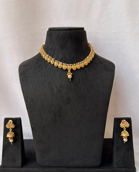 Necklace with Red Green Meena - Code - GOLD8