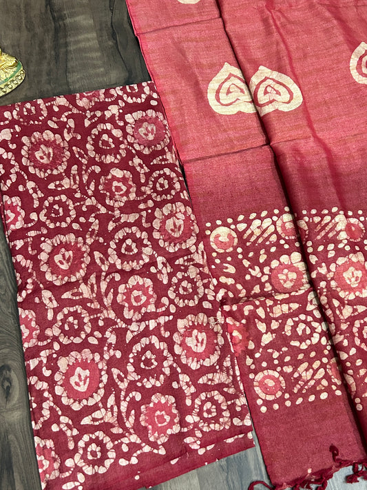 Hand BlockPrint Cotton Dress Material with Chiffon Dupatta