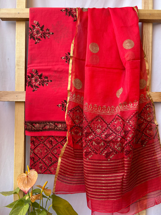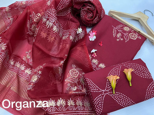 Hand BlockPrint Cotton Dress Material with Organza Dupatta