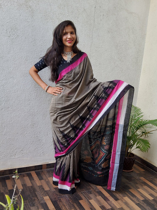 64 Sambalpuri Ikat Mercerised Cotton Saree