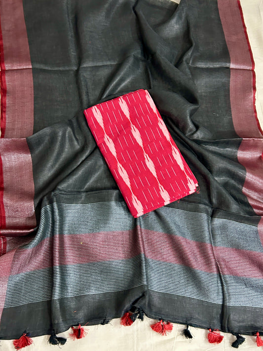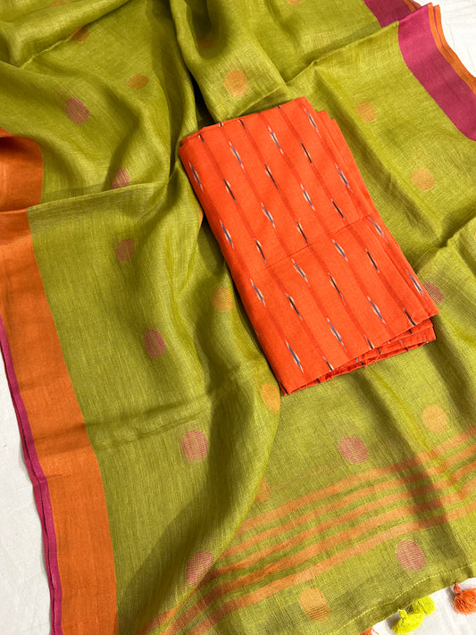 Handloom Cotton Weaving Bootis Top with Linen Dupatta