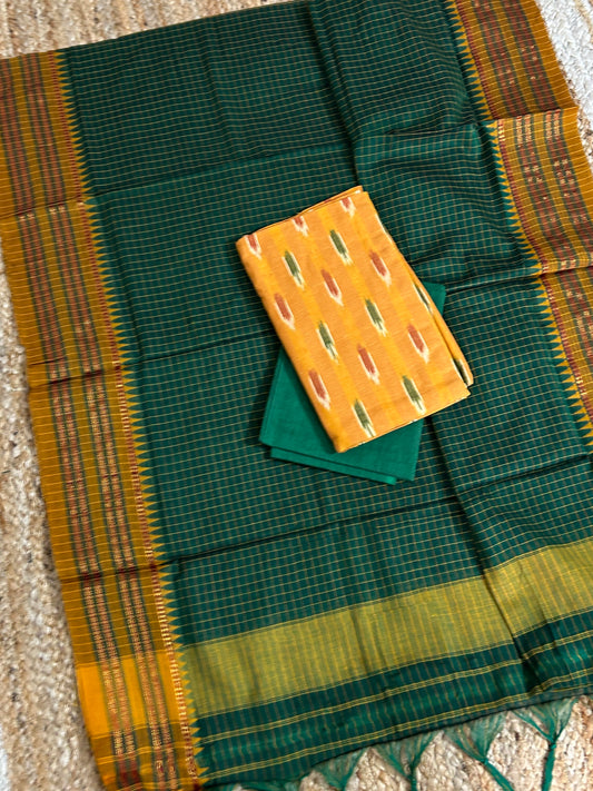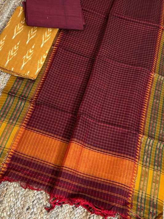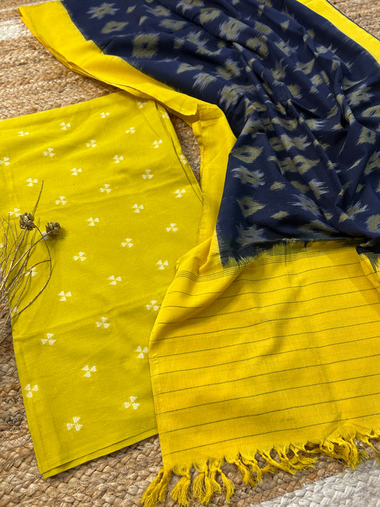 Ikat Cotton Dress Material with Narayanpeth Dupatta