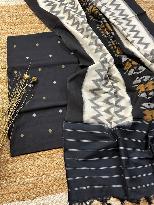 Handloom Cotton weaving booti Top with Ikat Cotton Dupatta
