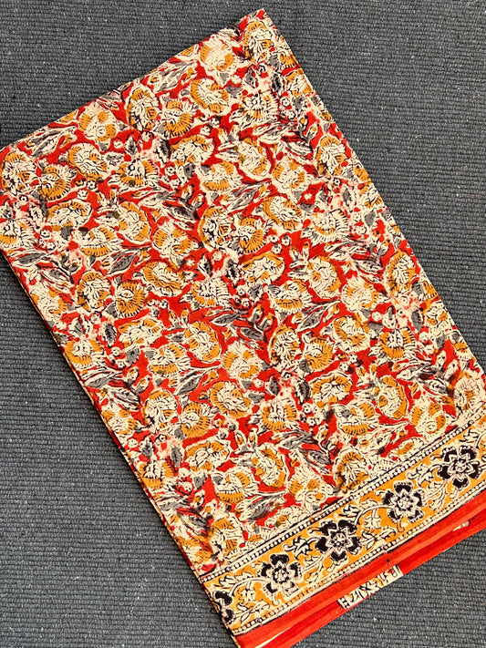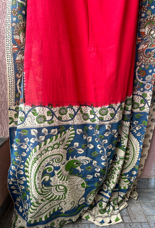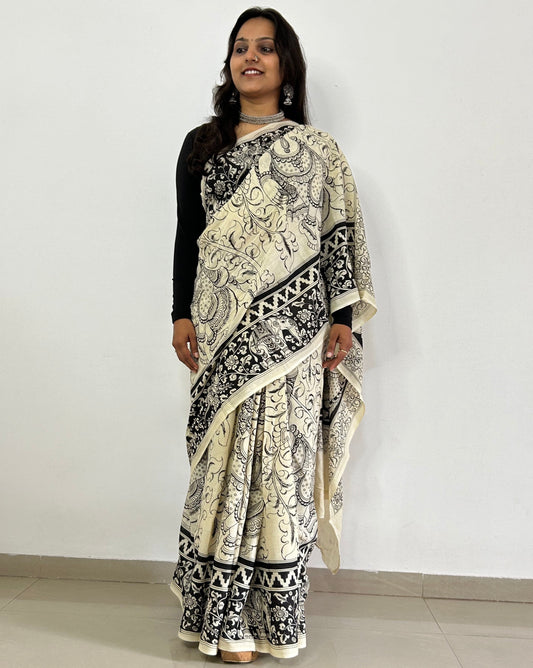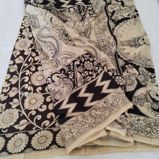 Kalamkari Hand Painted Cotton Saree with Blouse