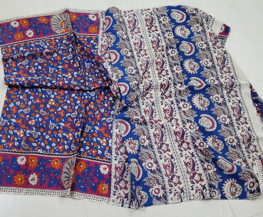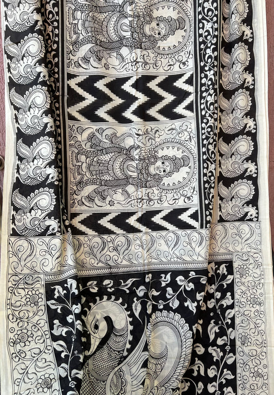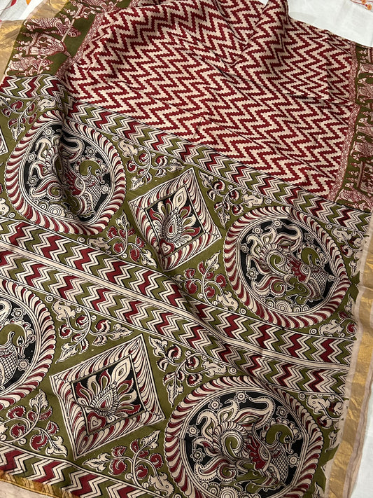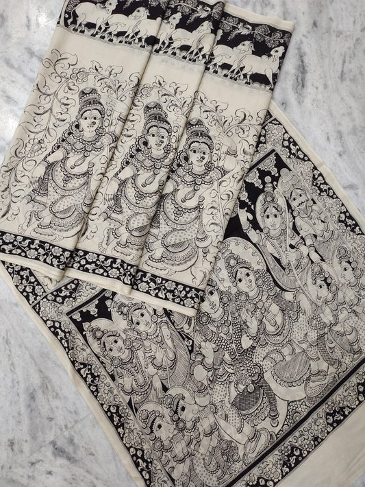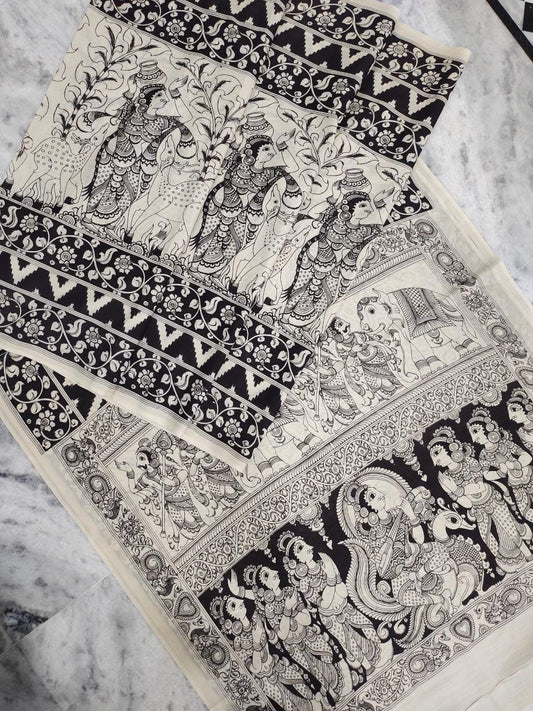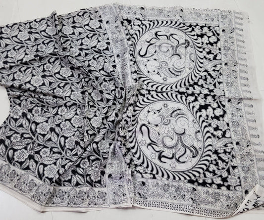Kalamkari Hand Painted Malmal Cotton Saree with Blouse