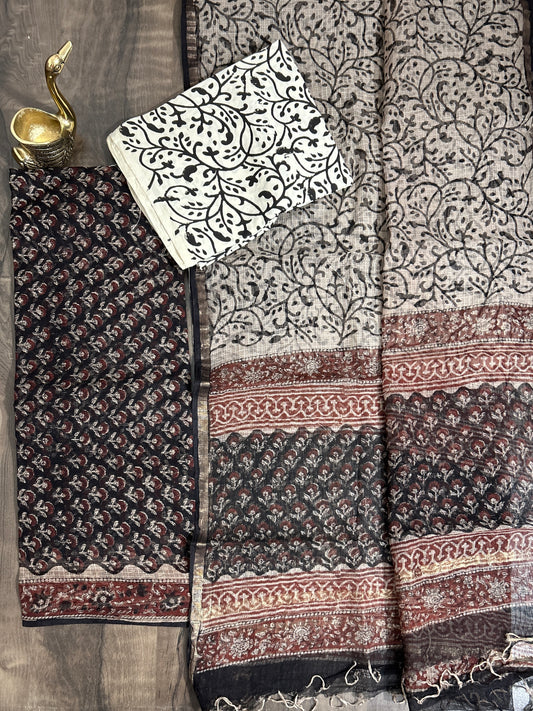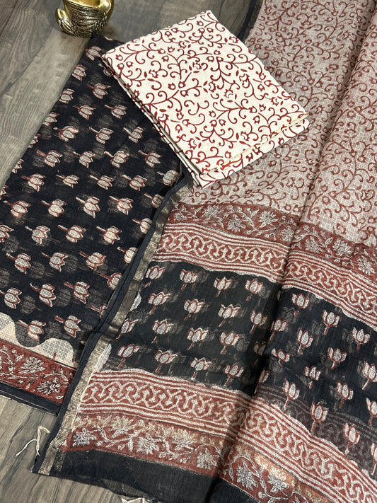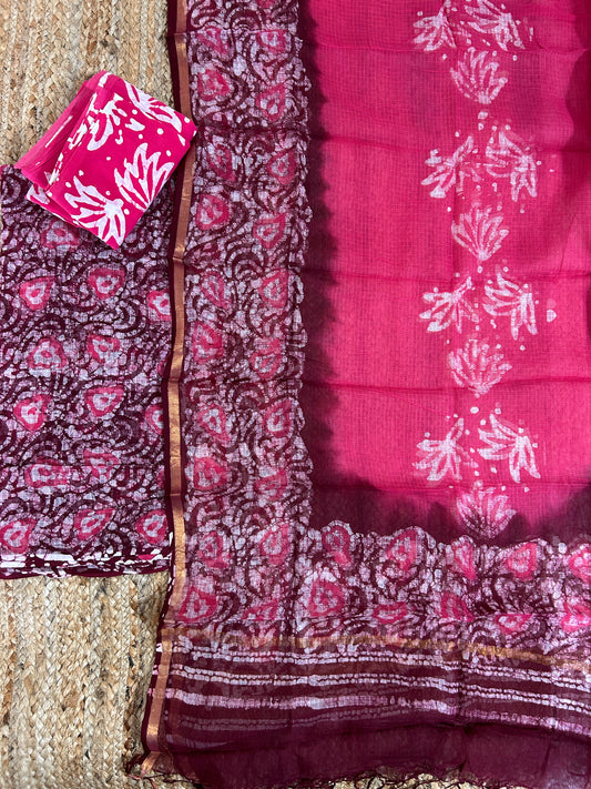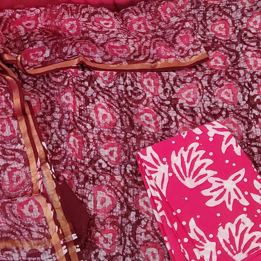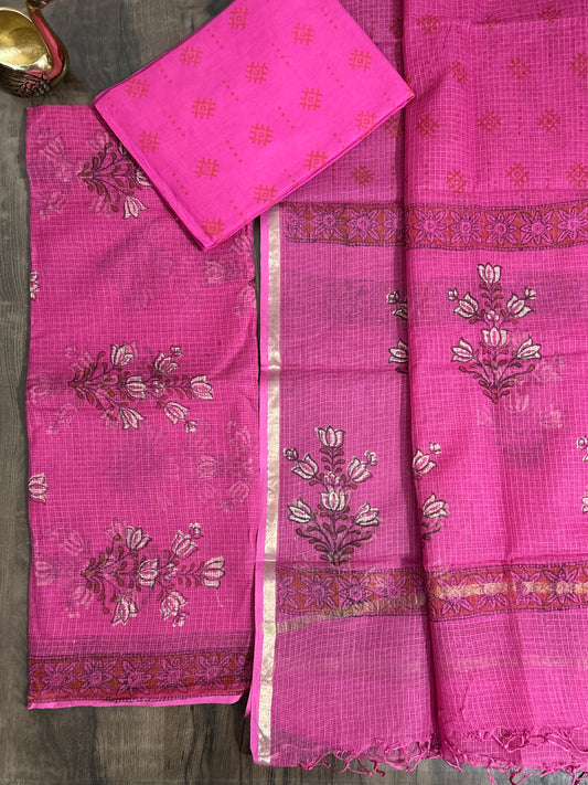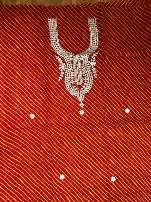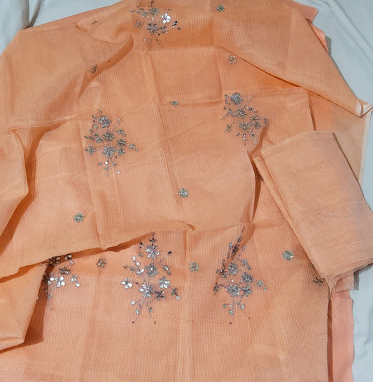 Peach Pure Kota Doriya Top Dupatta Set with Gota Patti work
