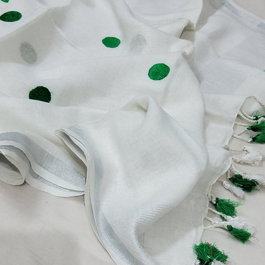 Pure Linen Dupatta with All over bootis and tassels