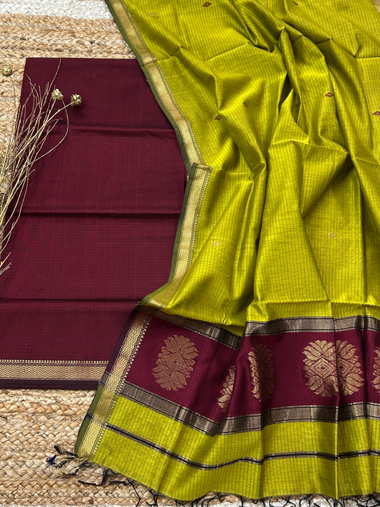 Hand Block Printed Maheshwari Silk Cotton Dress Material