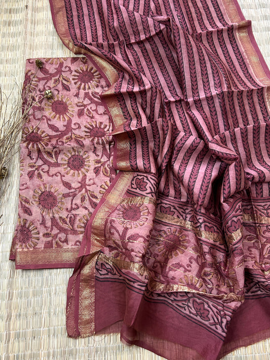 Hand Block Printed Maheshwari Silk Cotton Dress Material