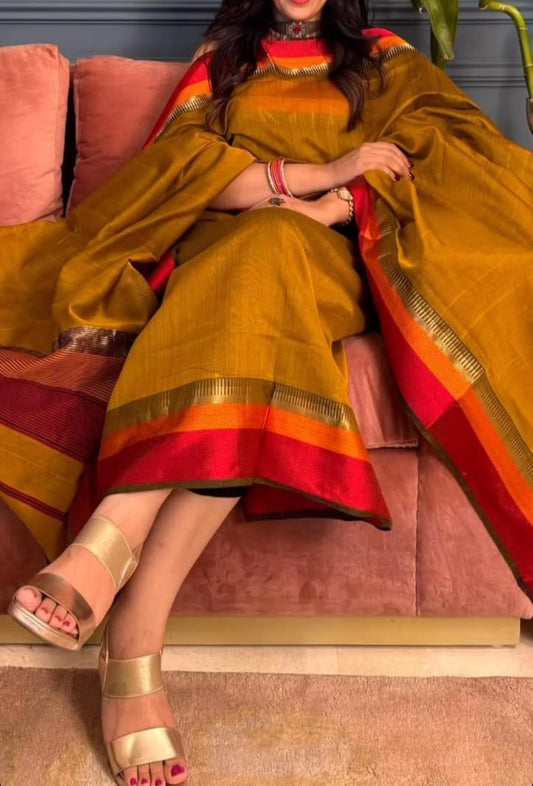 Hand BlockPrint Maheshwari Silk Cotton Dress Material