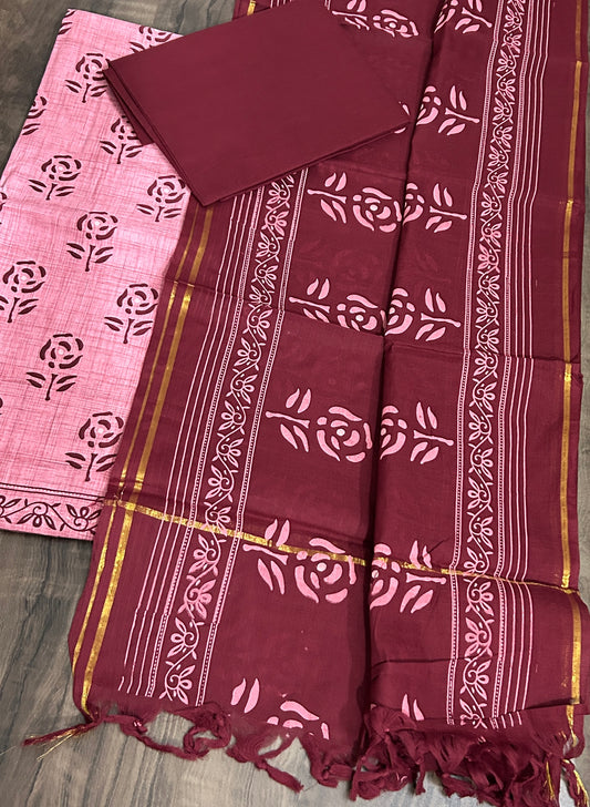 Mangalagiri Cotton Hand blockprint Dress Material
