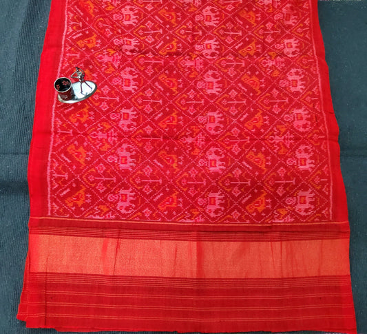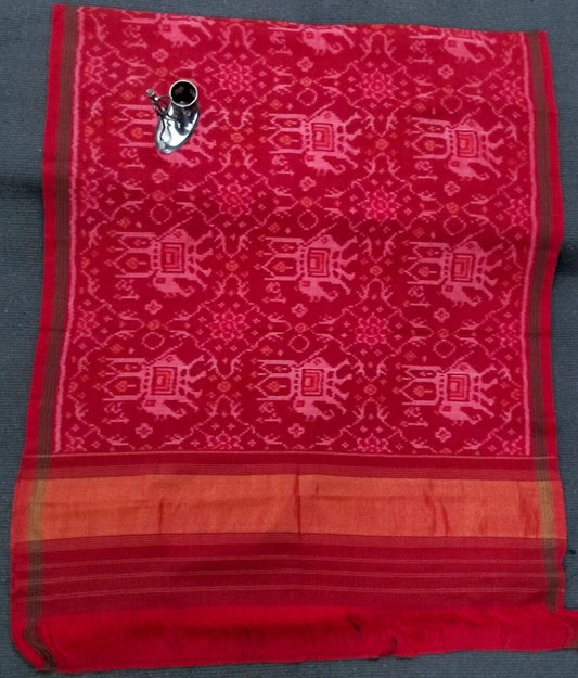 Red Patola Hand Woven Woollen Shawl with zari pallu