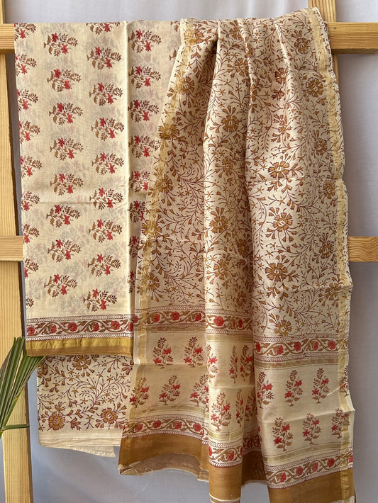 Hand BlockPrint Chanderi Silk Cotton Dress Material