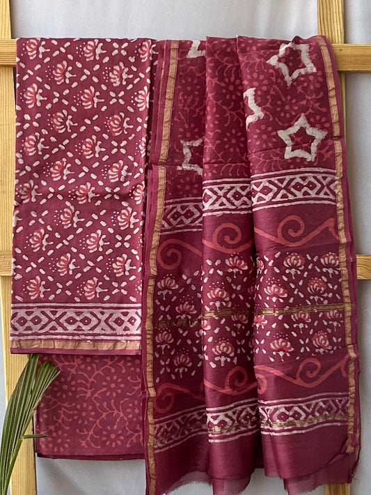Hand BlockPrint Chanderi Silk Cotton Dress Material